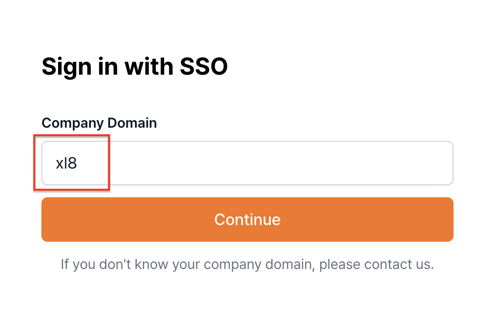 - In the Company Domain field, enter the Entity ID from the previous step, and Okta will take you to the page where you sign in.