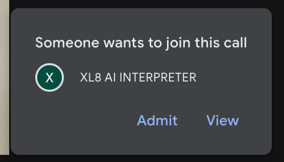 Cuando aparezca una ventana emergente en Meet, haz clic en Aprobar para admitir al bot intérprete AI en la reunión.