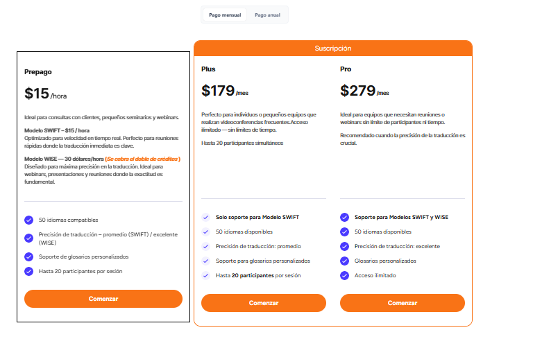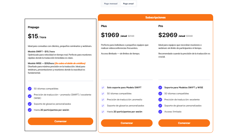 Wise: Mayor precisión; recomendado para reuniones de negocios externas, presentaciones académicas o cuando subes documentos/presentaciones.
