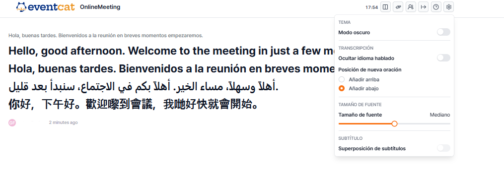 Para usuarios que usan por primera vez los subtítulos traducidos en tiempo real de EventCAT