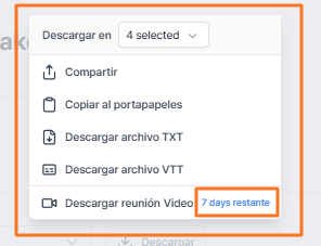 Los subtítulos y los registros de la reunión se almacenan durante 7 días después de que finaliza la reunión. Pasado ese período, se eliminan automáticamente, por lo que es importante descargar los archivos necesarios dentro de ese plazo.