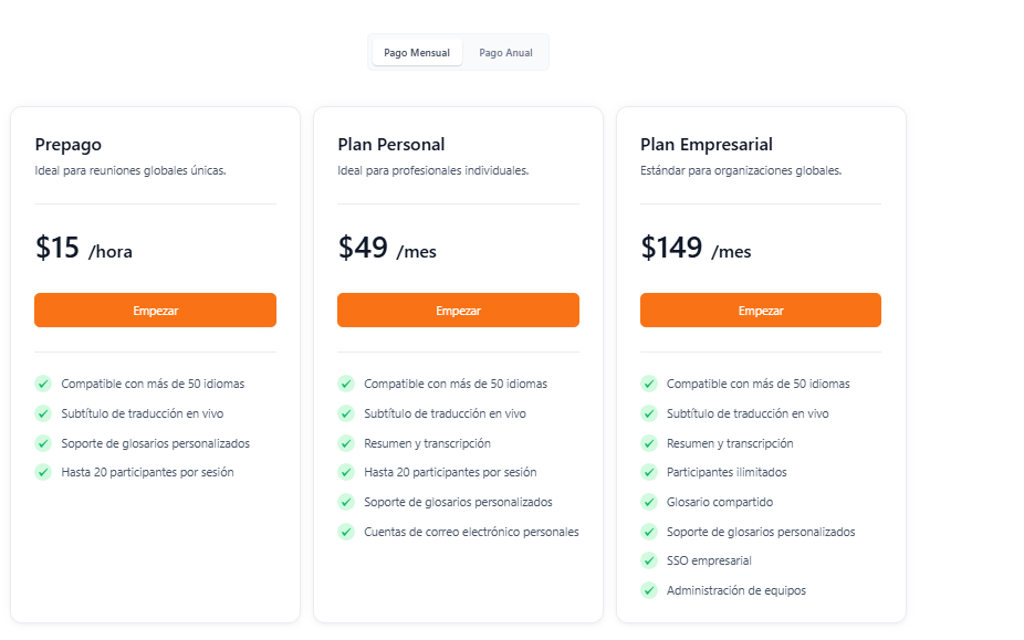 Usuarios que quieran iniciar reuniones multilingües rápida y fácilmente a través de la web, sin instalar software adicional