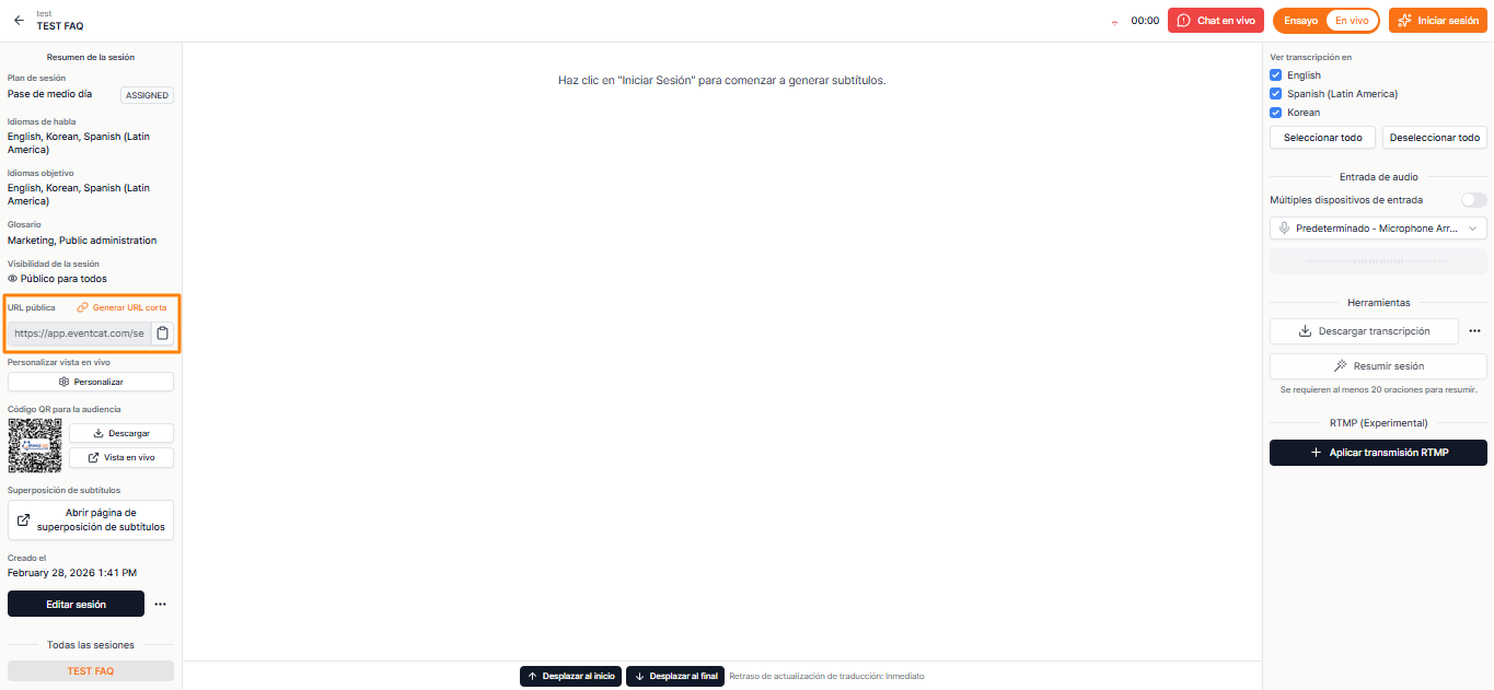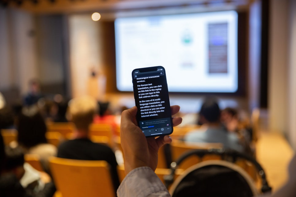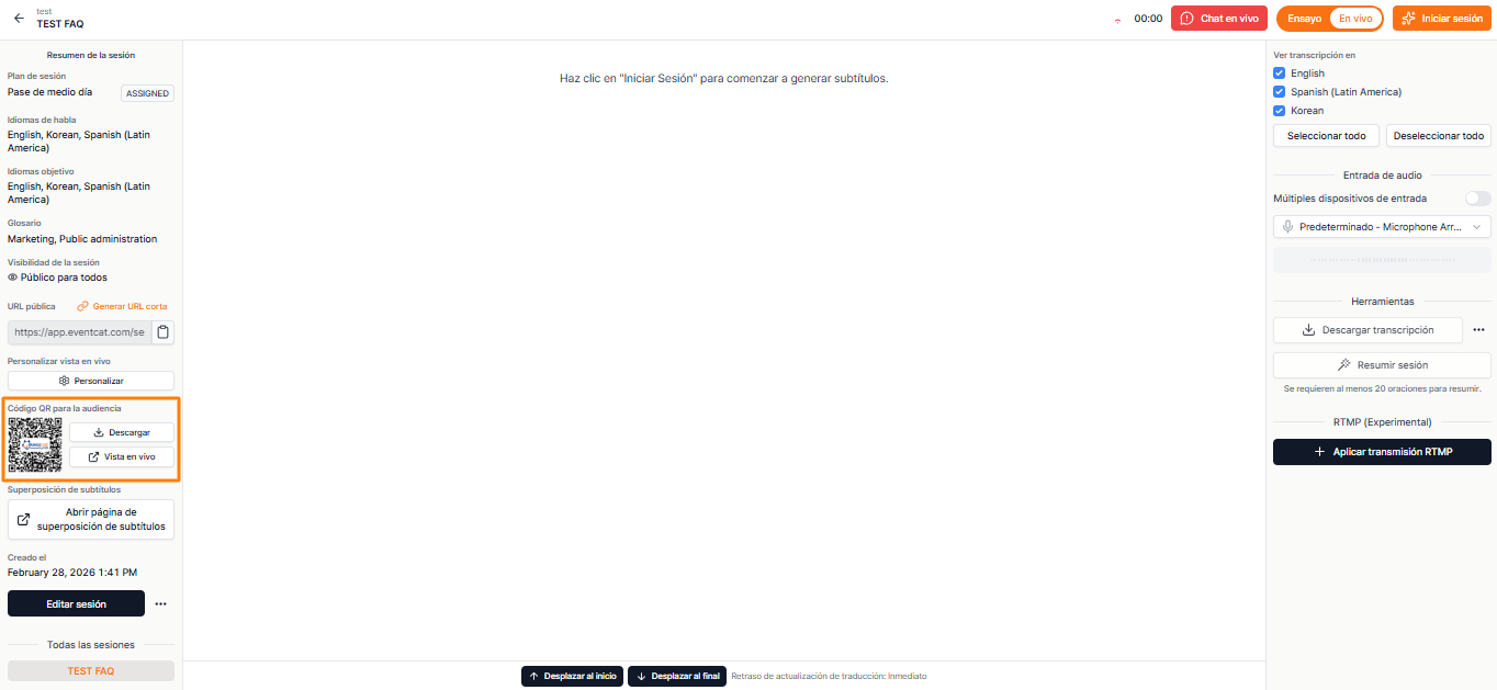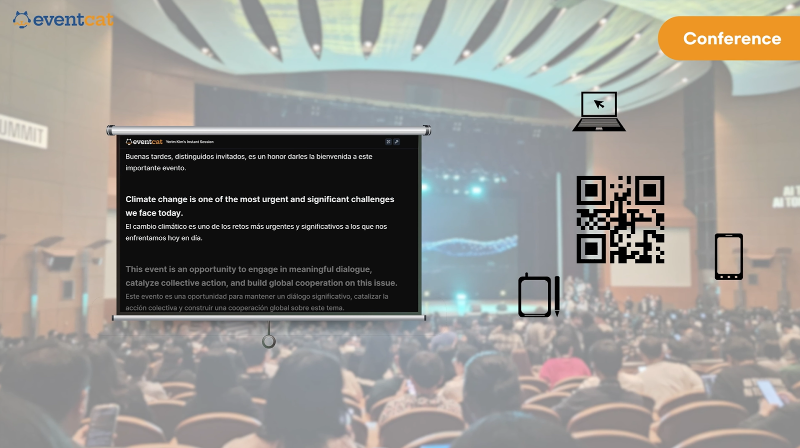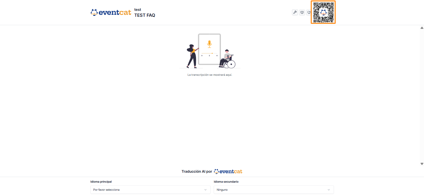 • Los asistentes pueden escanear el código QR con sus teléfonos o tabletas para ver los subtítulos en tiempo real en el idioma que prefieran.