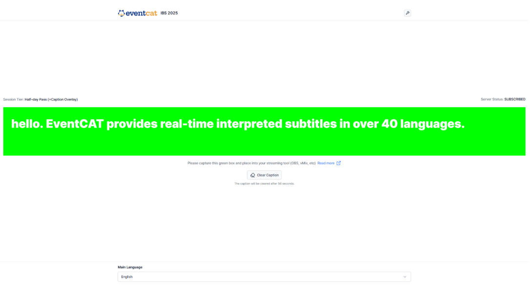 Ejemplo de evento que utilizó Caption Overlay para subtítulos simultáneos: