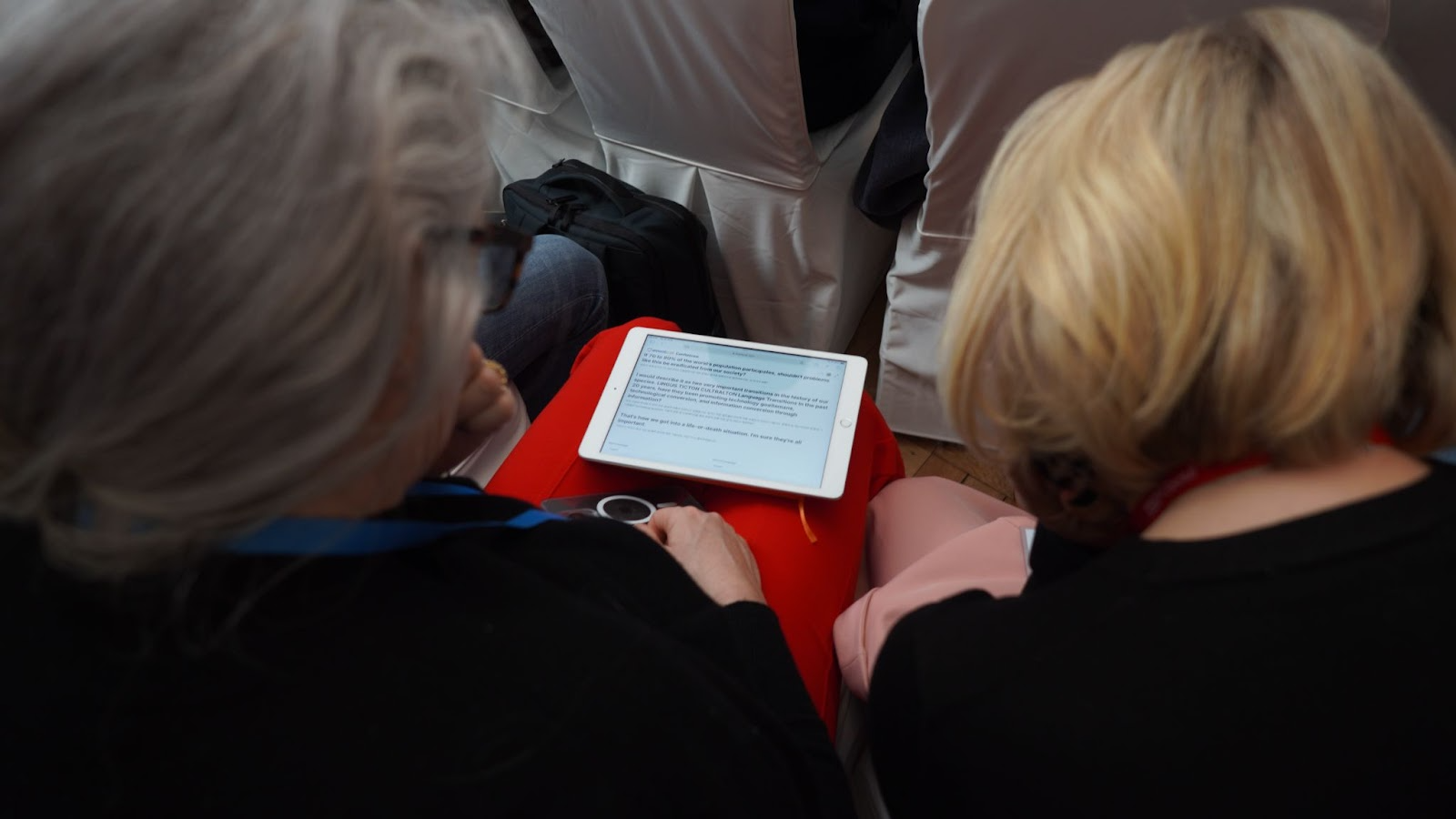Al acceder a los subtítulos vía código QR en dispositivos personales como smartphones o tabletas, los participantes pueden conectar auriculares o AirPods para escuchar los subtítulos traducidos en tiempo real en formato de audio.
