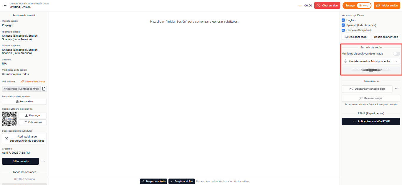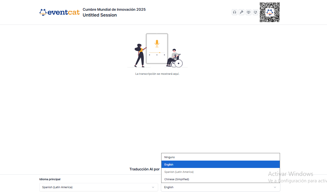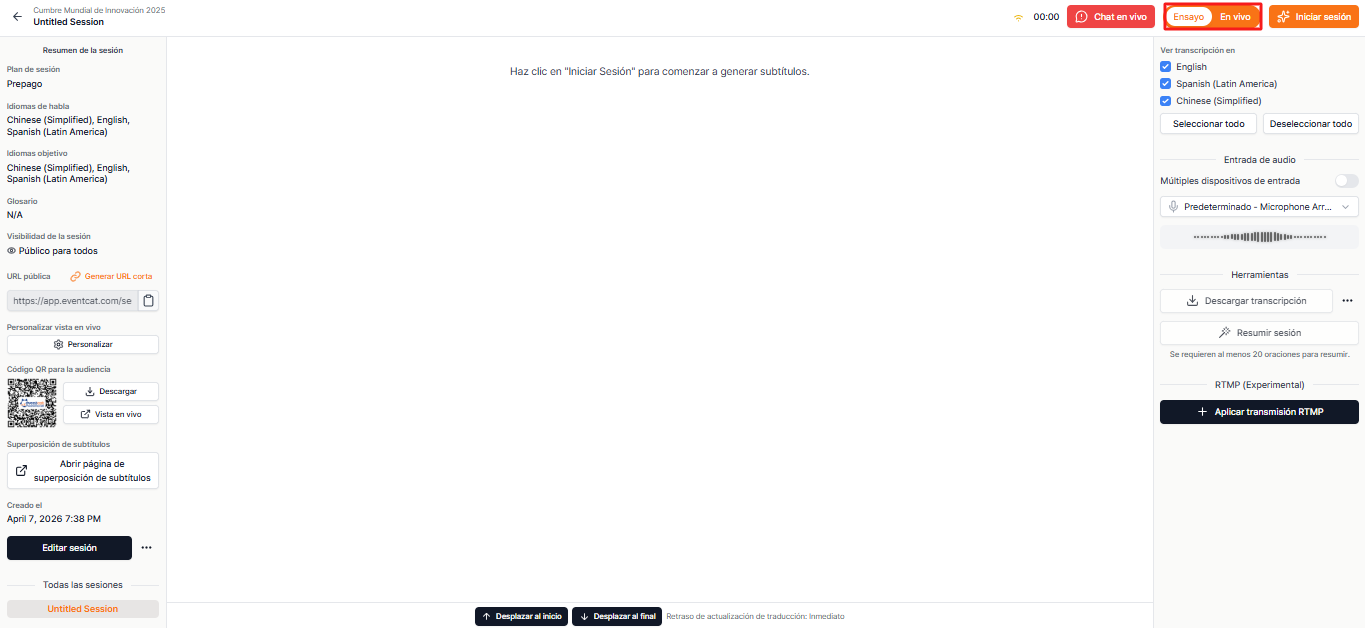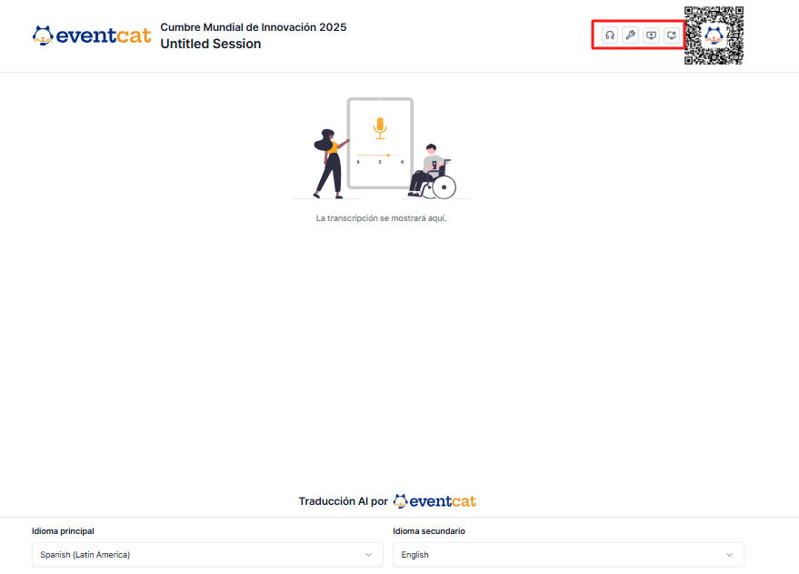 Una vez que la configuración de EventCAT Conference esté completa, puedes comenzar a operar la interpretación simultánea con IA en tiempo real para tu evento.