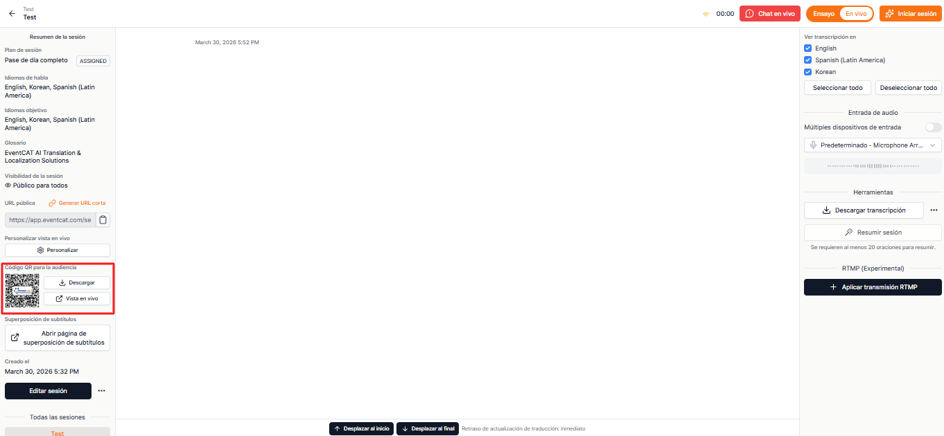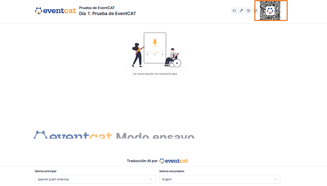 EventCAT Conference ofrece acceso mediante código QR, permitiendo que la audiencia vea subtítulos traducidos en tiempo real directamente en sus teléfonos o tablets.