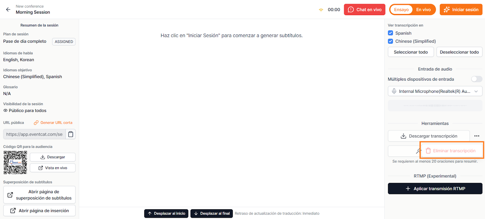A partir de ese momento, los asistentes podrán unirse y ver subtítulos y traducciones en tiempo real.