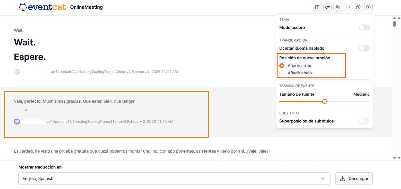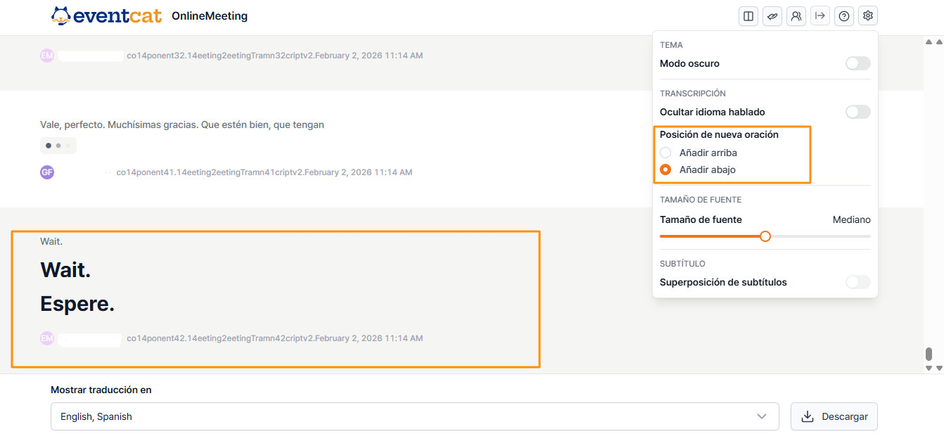 Sí. EventCAT OnlineMeeting ahora te permite personalizar la posición de los subtítulos, ayudando a tu audiencia a seguir mejor el contenido durante la interpretación en vivo.