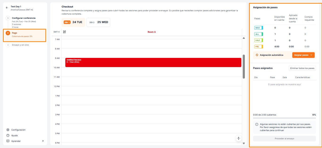 En esta página, el panel Asignación de pases a la derecha te permite gestionar la cobertura. Aquí podrás: