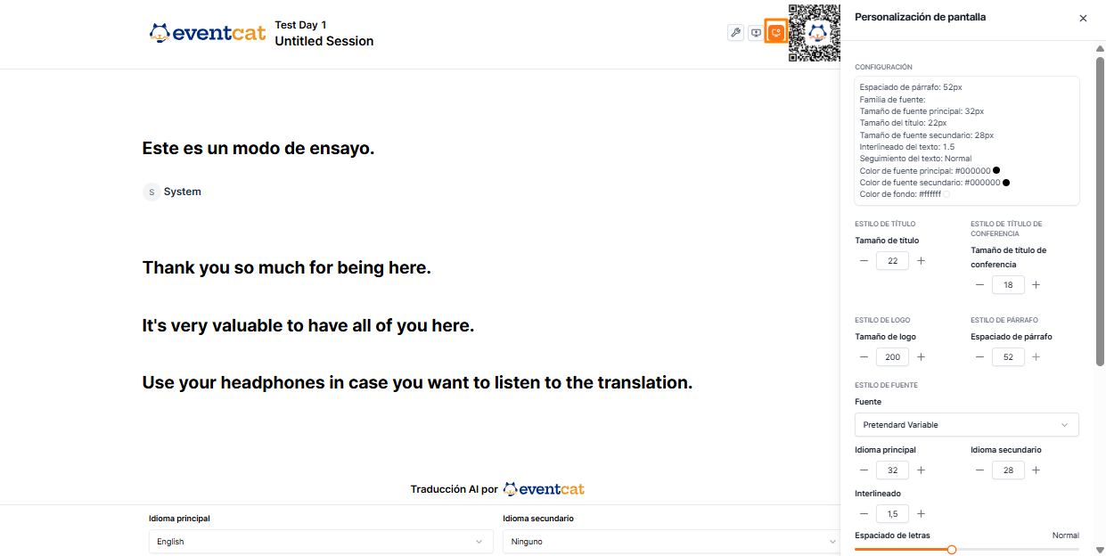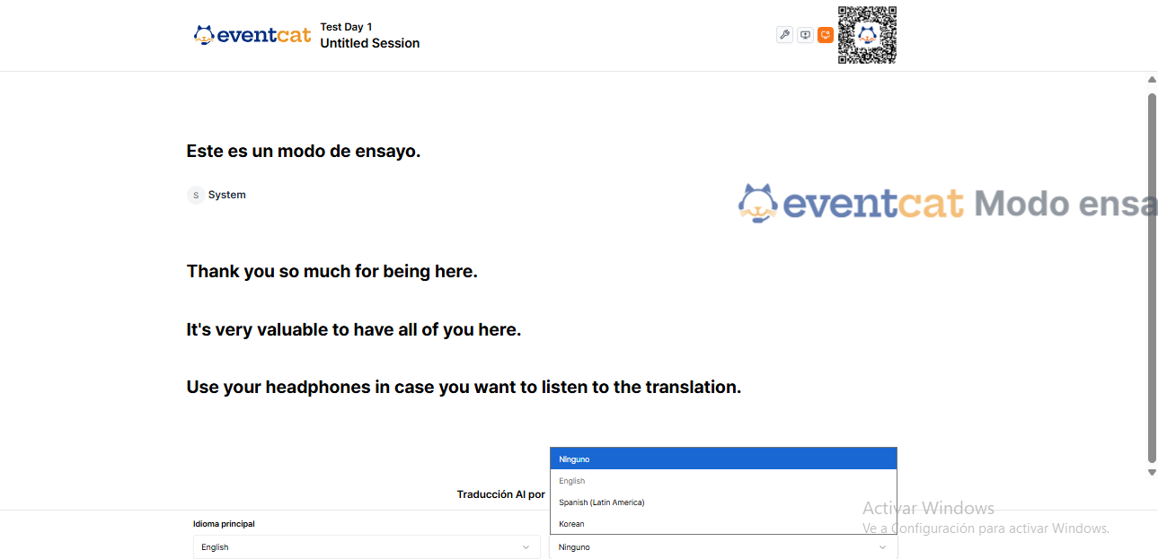 Los participantes podrán acceder a idiomas adicionales mediante un código QR desde sus teléfonos.