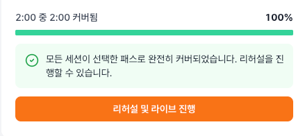 모든 세션이 커버되지 않으면 리허설 및 라이브 진행을 시작할 수 없습니다